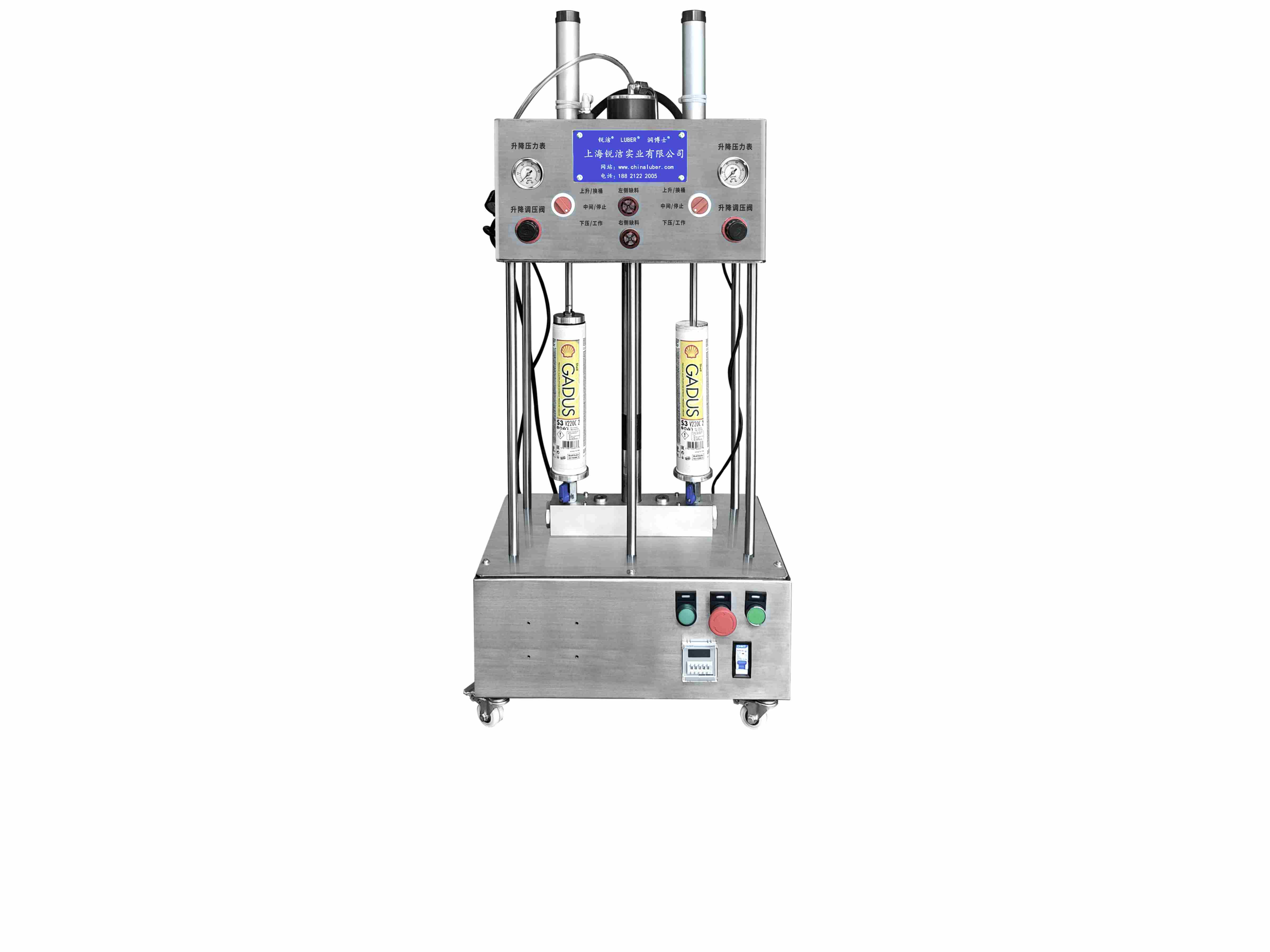 雙立柱打膠機是以壓縮空氣作動力,利用柱塞往復運動,從而輸出壓力潤滑油脂的一種裝置。配置有預施壓裝...